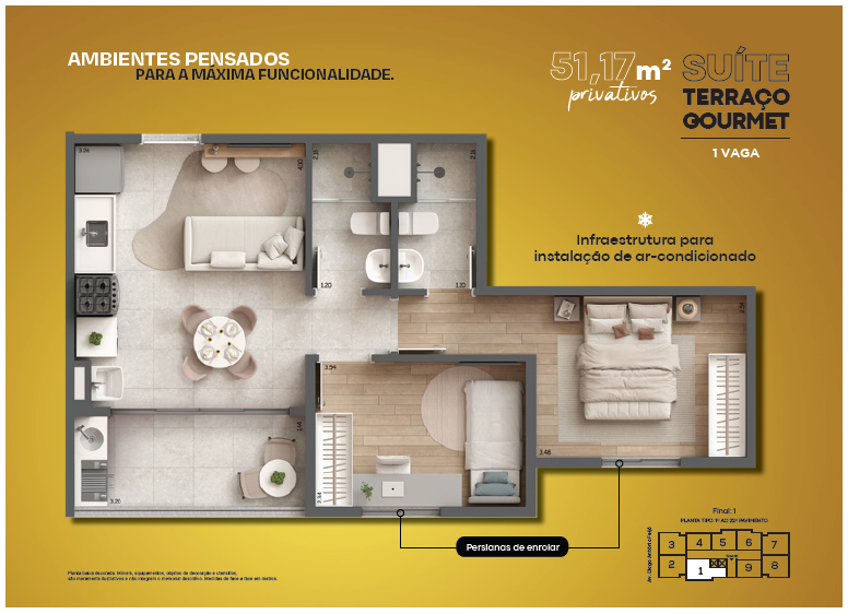 * 2 dormitórios Opção com Suíte 🛏️